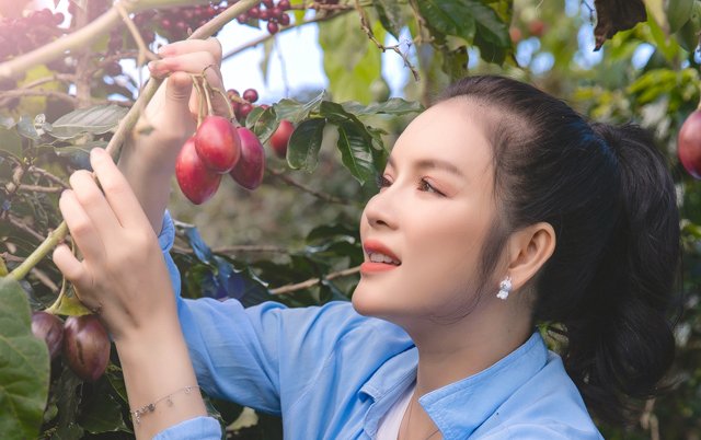 Lý Nhã Kỳ thu hoạch cà chua