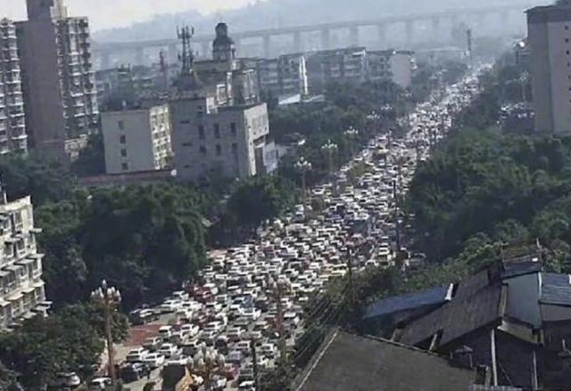 Người dân thành phố Lạc Sơn, tỉnh Tứ Xuyên tháo chạy khi quan sát thấy đám khói dày đặc màu sắc bốc lên từ nhà máy sản xuất polysilicon.
