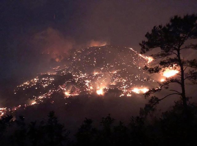 Rừng keo hơn 50ha bốc cháy giữa trưa, hơn 500 người nỗ lực dập lửa đến tối mới cơ bản khống chế được đám cháy.