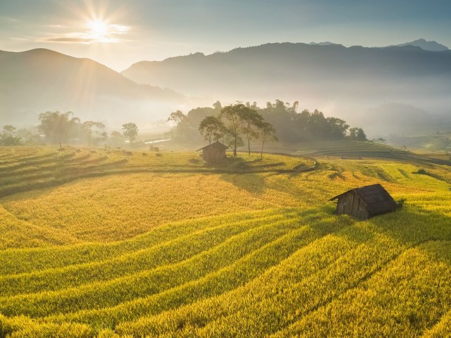 Vùng núi tây bắc đang mùa lúa chín - mùa đẹp nhất trong năm. Dịp này, du khách lại kéo nhau lên Tây Bắc để được tận hưởng vẻ đẹp nổi tiếng thế giới trong tiết trời mát mẻ dễ chịu nhất trong năm.