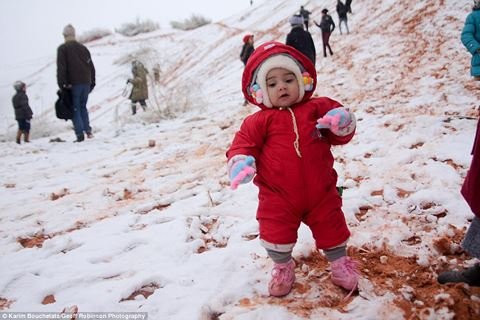 Người dân thị trấn Ain Sefra ở Algeria, nơi gọi là “cửa ngõ vào sa mạc Sahara” sững sờ khi chứng kiến cảnh tuyết phủ trắng khắp nơi lần thứ hai trong năm nay.