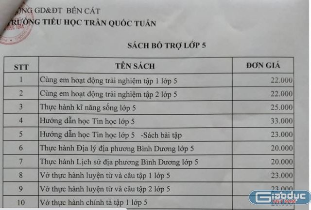 Chỉ nhìn vào bảng giá sách bổ trợ của Trường tiểu học Trần Quốc Tuấn thông báo thì có lẽ nhiều phụ huynh học sinh sẽ cảm thấy hụt hơi vì giá tiền quá cao.
