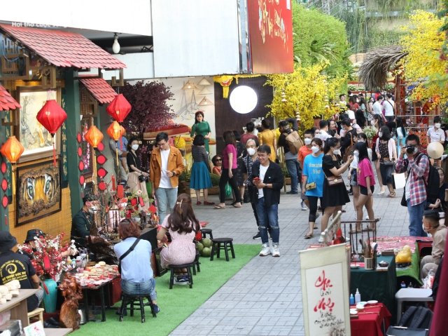 Phố Ông đồ (quận 1, TP.HCM) được trang trí rực rỡ sắc màu đón xuân, hàng nghìn người tới đây "check-in" để có những bức ảnh đẹp.