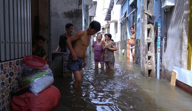 2 ngày sau trận mưa như trút nước, hàng chục hộ dân ở Sài Gòn bị nước ngập bao vây tứ phía khiến khu dân cư như ốc đảo, cuộc sống, sinh hoạt của người dân bị đảo lộn hoàn toàn.