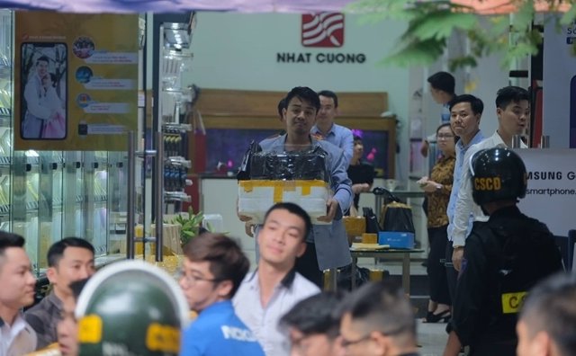 Công an thu giữ nhiều tài liệu sau quá trình khám xét Công ty Nhật Cường mobile kéo dài 12 tiếng tại Hà Nội.