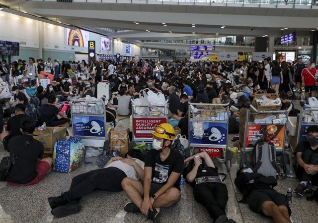 Hàng trăm người biểu tình chiều nay tập trung tại sảnh đến của sân bay quốc tế Hong Kong, trong khi trung tâm khẩn cấp ở sân bay đã được kích hoạt.