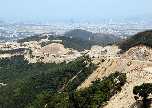 Nhiều hecta đất đá cùng cây cối trên núi Chín Khúc giáp Nha Trang với huyện Diên Khánh, Cam Lâm đang bị phá, san lấp làm dự án.