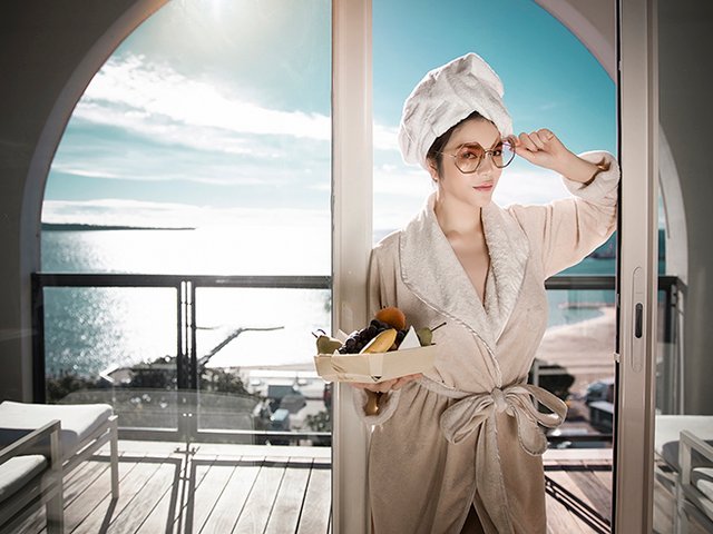 Lý Nhã Kỳ mặc trễ nải khoe vẻ sexy ở khách sạn có giá 45.000 euro