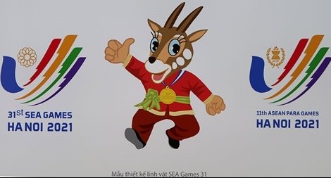 Chú Sao La cùng mẫu biểu trưng Cánh chim bay lên - bàn tay chữ V được đề xuất làm biểu tượng của Đại hội thể thao Đông Nam Á lần thứ 31 (SEA Games 31).