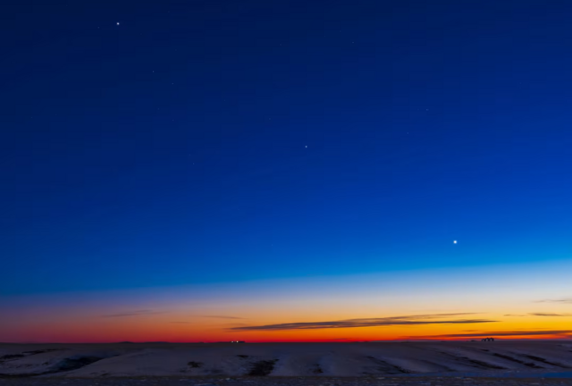 Sao Thủy, Sao Kim, Sao Hỏa, Sao Mộc, Sao Thổ và Sao Thiên Vương cùng xuất hiện trong cuối ngày tháng 2 và đầu tháng 3 tạo nên một màn trình diễn ngẫu nhiên hiếm gặp.