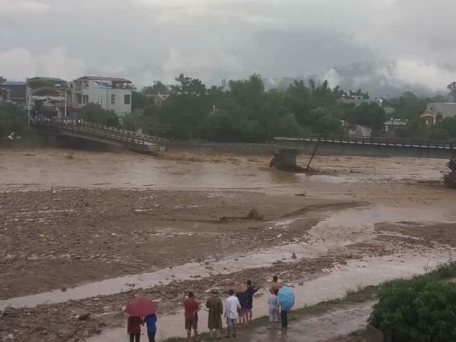 Khoảng hơn 12h trưa nay 11.10, do lượng nước lũ dồn từ thượng nguồn về quá lớn khiến cây cầu Thia Yên Bái bị sập. Thông tin ban đầu, có 2 phóng viên bị nước cuốn khi đang đứng trên cầu tác nghiệp.