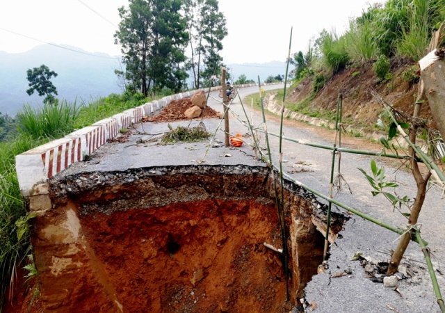QL47 nhiều đoạn qua bản Lửa xã Yên Nhân, huyện Thường Xuân, Thanh Hóa bị sạt lở nghiêm trọng. Điểm sạt lở chiếm 23 mặt đường tạo thành hố tử thần sâu hoắm.