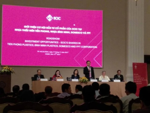 Chiều 17.11, SCIC tổ chức buổi giới thiệu cơ hội đầu tư cổ phiếu tại 4 doanh nghiệp gồm Tập đoàn FPT, Công ty CP Nhựa Bình Minh (BMP), Nhựa Thiếu niên Tiền Phong (NTP) và Domesco (DMC).