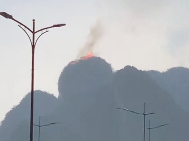 Trong cơn dông chiều 19/7, tia sét đánh trúng mỏm núi thuộc vịnh Hạ Long, tỉnh Quảng Ninh gây ra vụ cháy ở đỉnh núi.