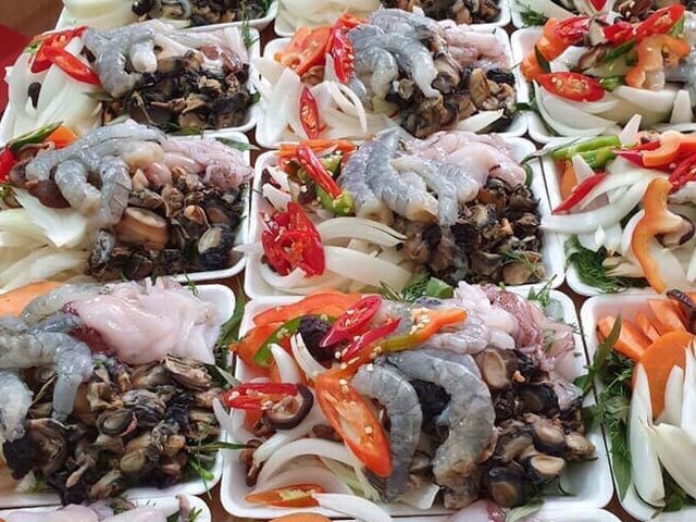 Hải sản vốn được xem là mặt hàng có giá khá cao, song, nhiều người sẽ giật mình vì chỉ cần bỏ ra 50.000 đồng là có thể mua được 1 set nhân lẩu tràn ngập các loại hải sản tươi sống.