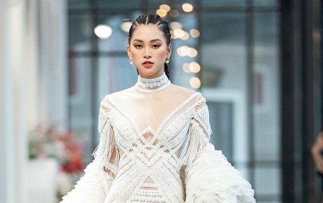 Hôm 26/10, Hoa hậu Tiểu Vy xuất hiện ấn tượng trong show 'Another Day' của Lê Thanh Hoà tại Sa Pa.