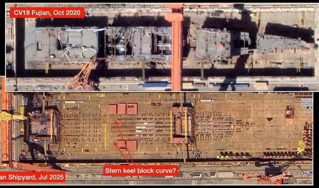 Những hình ảnh mới nhất cho thấy tàu sân bay Phúc Kiến của Trung Quốc đã sẵn sàng thử nghiệm hệ thống phóng máy bay chiến đấu J-15T