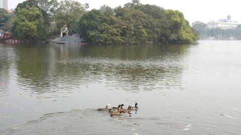 Trong khi những chú thiên nga bị di chuyển ngay sang hồ Thiền Quang sau 1 ngày ở Hồ Gươm, thì 6 chú vịt trời vẫn đang thong dong bơi lội.