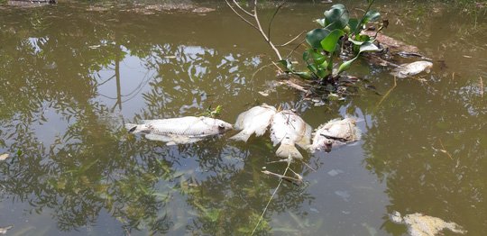 Cá chết nổi đầy sông Bàn Thạch
