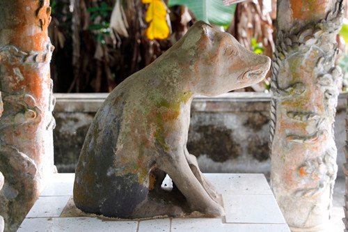 Xem tượng chó đá là thần cẩu phù trợ làng, người dân Bao La (Thừa Thiên Huế) không ăn thịt chó, ngày lễ mang xôi gà dâng lên miếu thần.