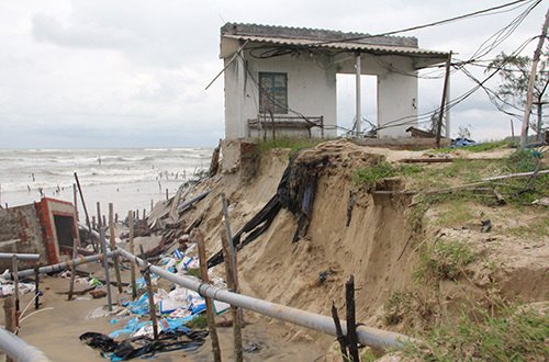 Sóng đánh gây sạt lở gần một km bờ biển