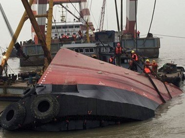 Nam Định: Lật tàu chở hơn 1.000 tấn ximăng trên sông Đào