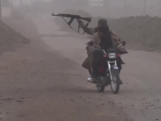 Phiến quân IS lái xe máy, bắn súng một tay khi giao tranh tại Syria