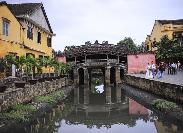 Du khách nước ngoài thích thú lội nước, 'săn' ảnh phố cổ Hội An ngày ngập lụt