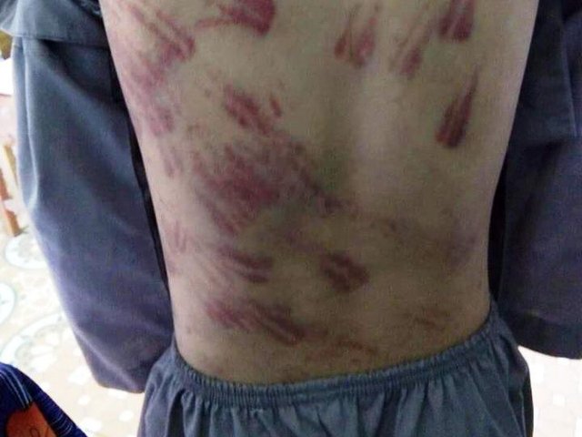 Khai báo với cơ quan công an, cháu N.C.D cho biết, nhiều lần bị sư thầy đánh do nghịch và hư. Vết thương trên đầu D. mới đây cậu bé cũng khai do sư thầy bắt “trồng cây chuối” (chúc đầu xuống đất – PV) chứ không phải bị nấm như cháu nói trước đó.
