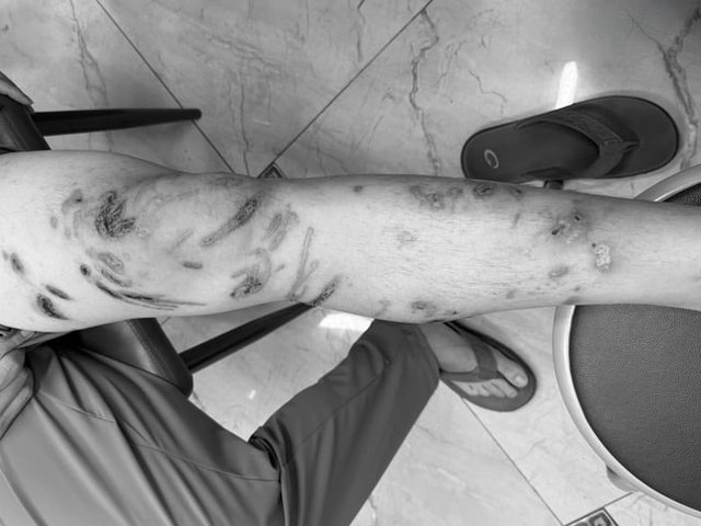 Tổn thương chằng chịt cơ thể do bị sứa chích khi tắm biển