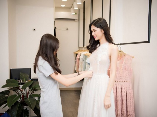 Á hậu Thanh Tú khoe vai trần quyến rũ với váy ren xuyên thấu