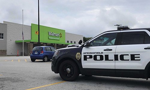 Nghi phạm ngoài 20 tuổi hôm 8/8 bị bắt khi mặc giáp toàn thân, mang súng trường vào một siêu thị Walmart ở bang Missouri.