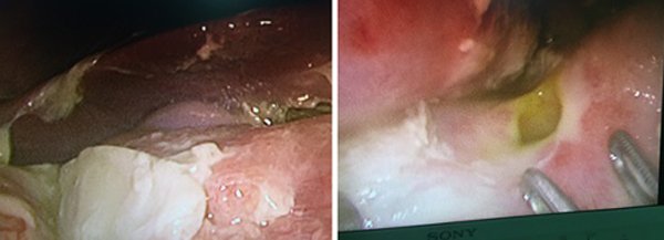Bệnh nhi nhập viện trong tình trạng đau bụng dữ dội vùng trên rốn, trước đó từng nôn ra máu. Khi chụp CT ổ bụng, bác sĩ phát hiện hành tá tràng bị thủng.