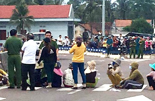 Hàng chục phụ nữ chặn quốc lộ phản đối dự án nhà máy hải sản