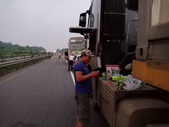 Lật xe trên cao tốc, nhiều tài xế nấu mì giữa đường chống đói