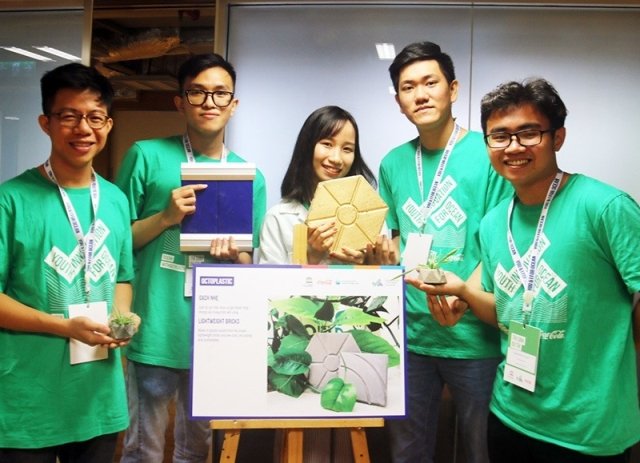 Lạc Dân Hy và nhóm sinh viên Đại học Bách Khoa (ĐHQG TP.HCM) đã “hô biến” rác thải nhựa thành gạch nhẹ đem lại giá trị kinh tế.