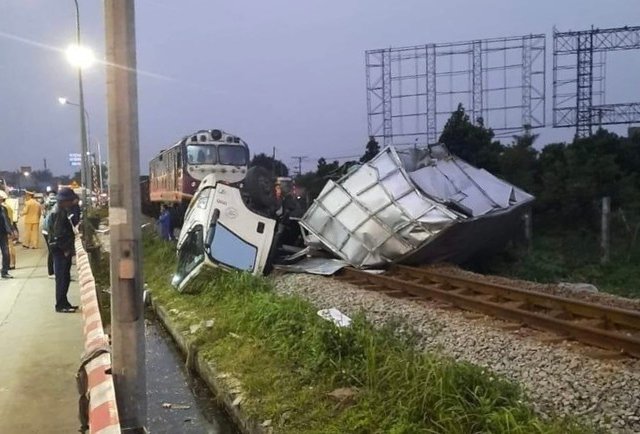 Tàu đâm văng xe tải trượt khỏi đường ray, đường sắt tê liệt