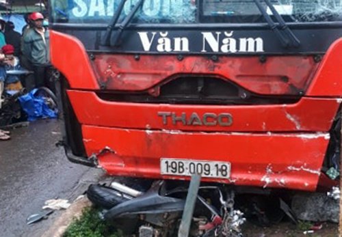 Tông xe máy qua đường, ôtô khách giường nằm tiếp tục lao vào các hàng quán trước chợ ở Gia Lai, khiến 3 người chết, 2 người bị thương, sáng 3/8.