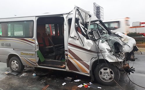 Xe khách 12 chỗ đâm vào ôtô tải mang biển kiểm soát 29C 246.60 đỗ bên phải đường khiến xe khách hư hỏng nặng, 2 hành khách tử vong trong khi 2 người khác bị thương.