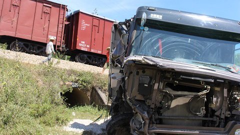 Tàu đâm văng xe tải trượt khỏi đường ray, đường sắt tê liệt