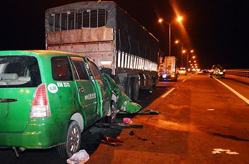 Ôtô tải bị nổ lốp, dừng lại trên cầu Cần Thơ để sửa trong đêm thì taxi chạy cùng chiều đâm vào khiến tài xế cùng hai khách tử vong.