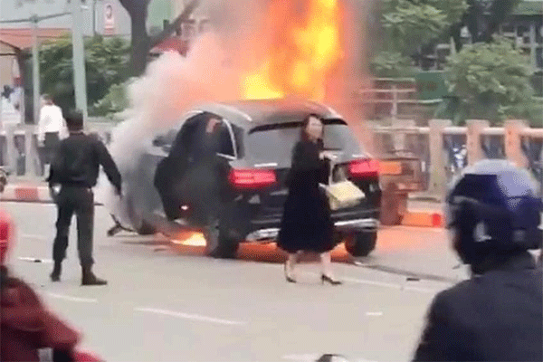 Xe Mercedes cháy rực, người phụ nữ bị cuốn vào gầm tử vong