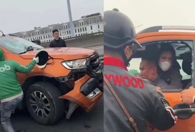 Trong lúc bỏ chạy cảnh sát, Lê Tiến Dũng đâm vào loạt xe khác, người dân bức xúc đuổi theo, dùng mũ bảo hiểm, vật dụng khác đập phá cửa kính để khống chế tài xế.