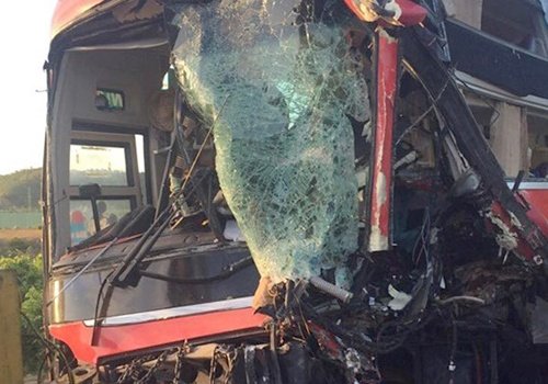 Sau cú tông trực diện vào xe tải trên đường tránh Nam Hải Vân, tài xế xe khách tử vong và mắc kẹt trong cabin, 20 người khác bị thương.
