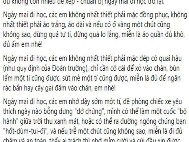 Bức thư thầy Hà Văn Quý gửi học sinh trường THPT Quảng Ninh (tỉnh Quảng Bình) đã khiến nhiều người xúc động bởi sự ấm áp, sẻ chia cùng những lời căn dặn ấm áp, thấu hiểu của người thầy đối với học trò vùng lũ.