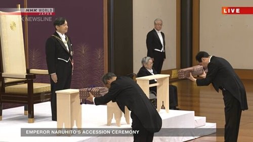 Hoàng thái tử Naruhito trở thành hoàng đế từ 0h ngày 1/5 và điều này được chính thức hóa bằng nghi lễ 10 phút tại Cung điện hoàng gia.