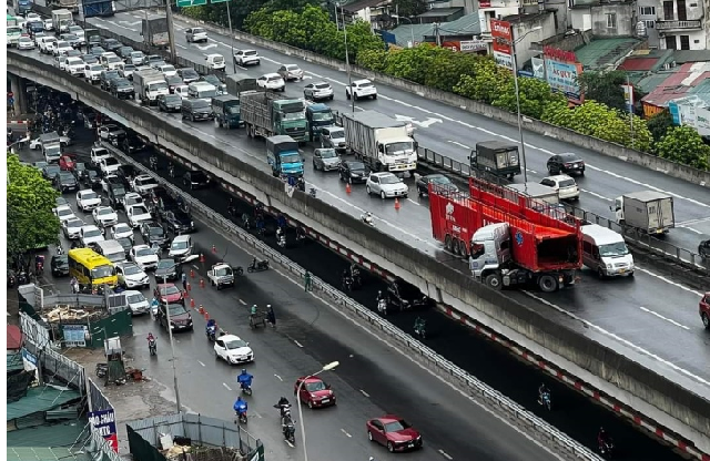 Hà Nội: Xe đầu kéo húc đổ lan can Vành đai 3, tảng bê tông rơi xuống đường
