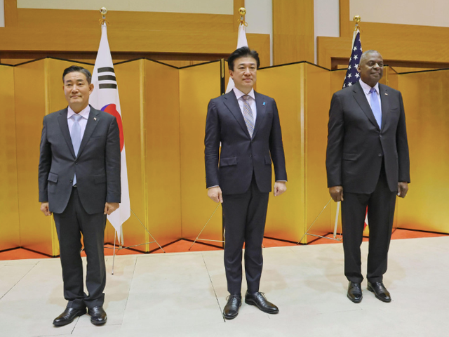 Theo Kyodo, ngày 28-7, Bộ trưởng quốc phòng ba nước Nhật Bản, Mỹ và Hàn Quốc đã họp tại Tokyo (Nhật Bản), nhằm thúc đẩy hợp tác thông qua các biện pháp như tổ chức các cuộc tập trận chung, trong bối cảnh các chương trình phát triển tên lửa và hạt nhân của Triều Tiên tiếp tục đe dọa an ninh khu vực.