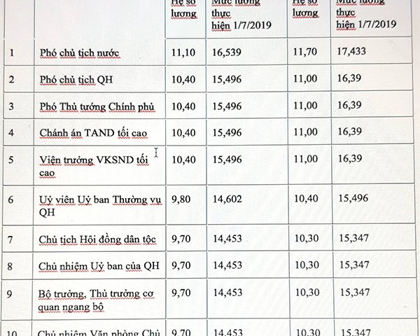 Lương của bộ trưởng trong năm 2019 ở mức cao nhất cũng chỉ hơn 15 triệu đồng khi áp mức lương cơ sở mới 1,49 triệu đồng.