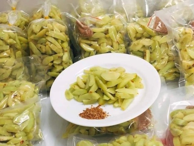 Táo mèo, loại quả rừng đặc sản được đem muối xổi khá lạ với đủ vị chua, cay, mặn, ngọt xen lẫn vị chát bỗng gây sốt trên thị trường. Tại Hà Nội, chị em công sở còn coi đây là món ăn vặt khoái khẩu.
